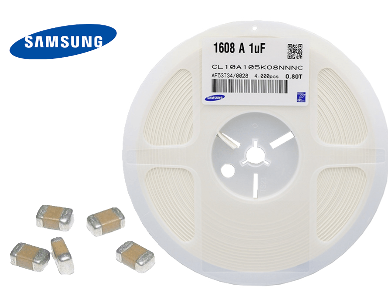 三星產品示例:三星MLCC的CL系列(如CL31B106KOHNNNE)提供10μF容量,適用于輸入濾波;而CL05A010MQ5NNNC(0.1μF)適合高頻旁路。